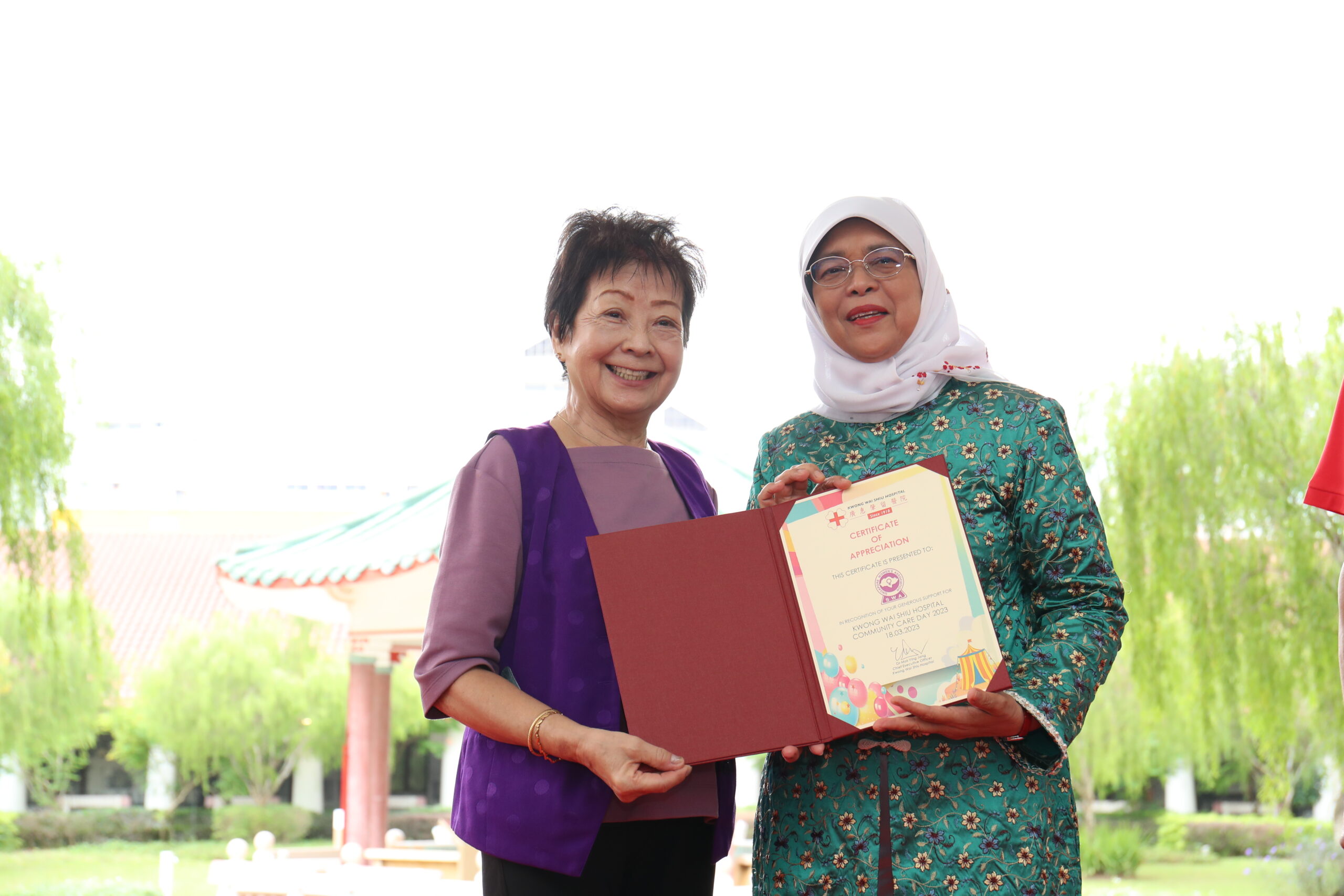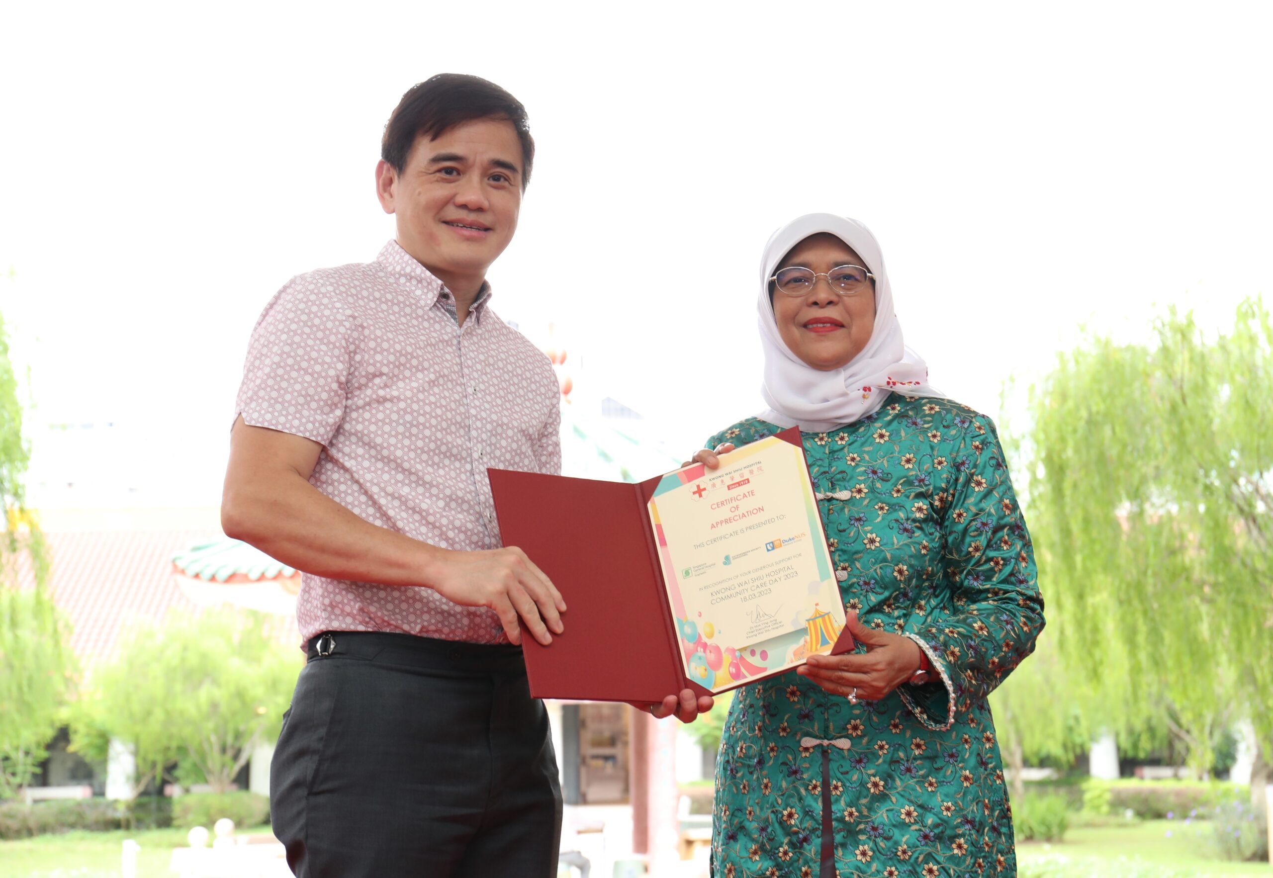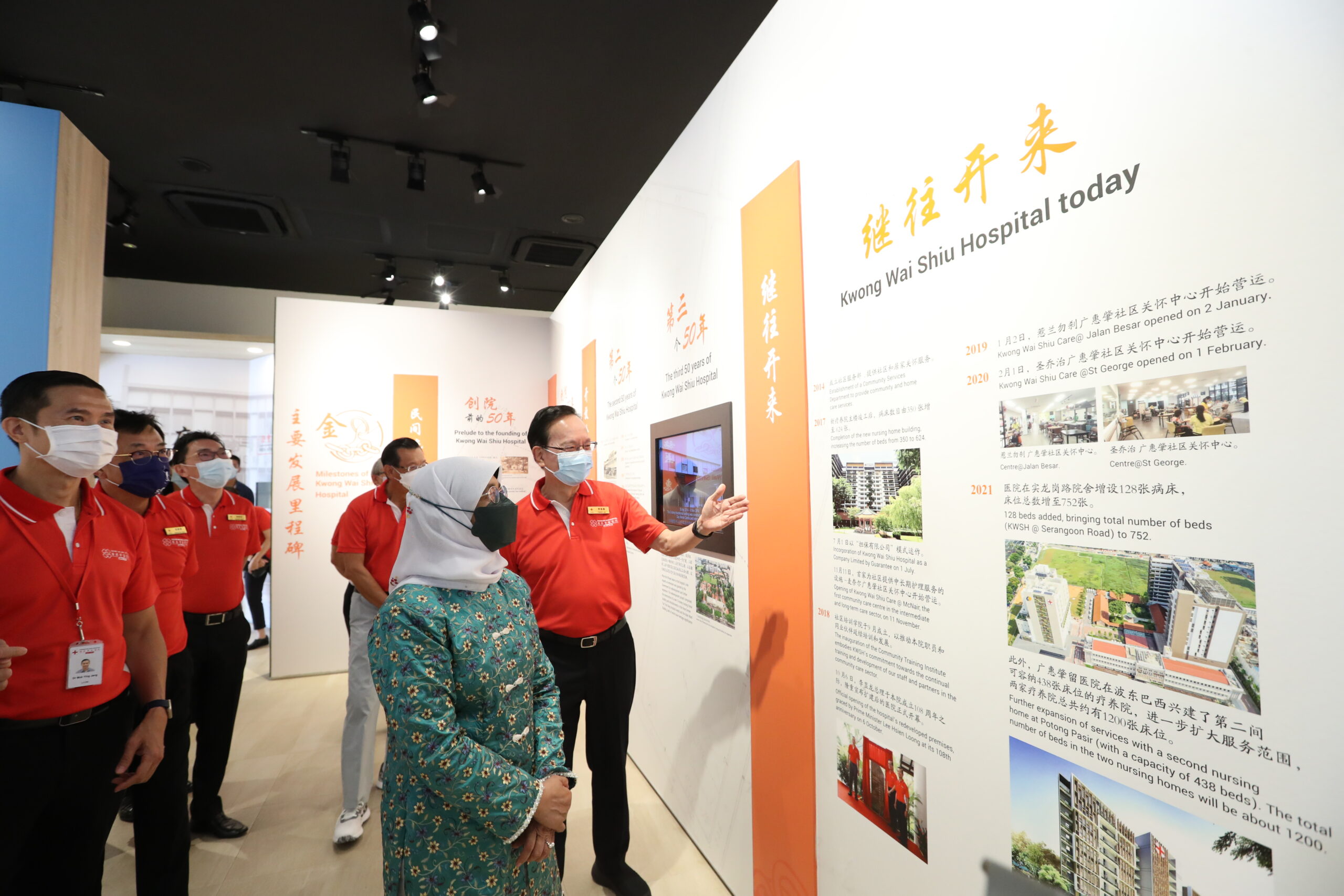 The Hospital had the privilege of welcoming President Halimah Yacob as our Guest-Of-Honour. During her visit, Mdm President toured our premises and was introduced to our rich heritage and initiatives. These included viewing of our KWSH Heritage Gallery and visiting the Senior Care Centre and an inpatient ward, which showcased the students’ training in our latest collaboration with NorthLight School on the ITE Skills Certificate in Community Care Support course.