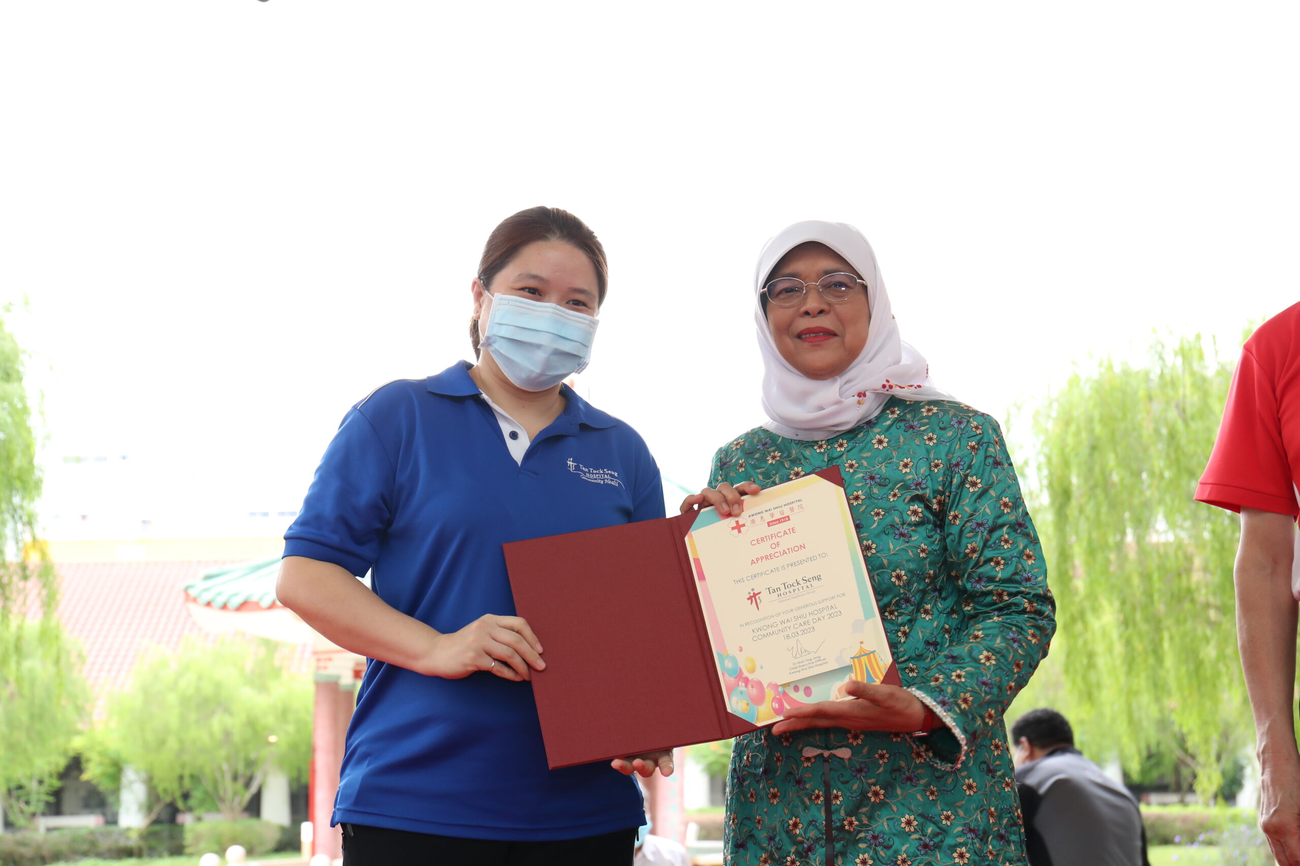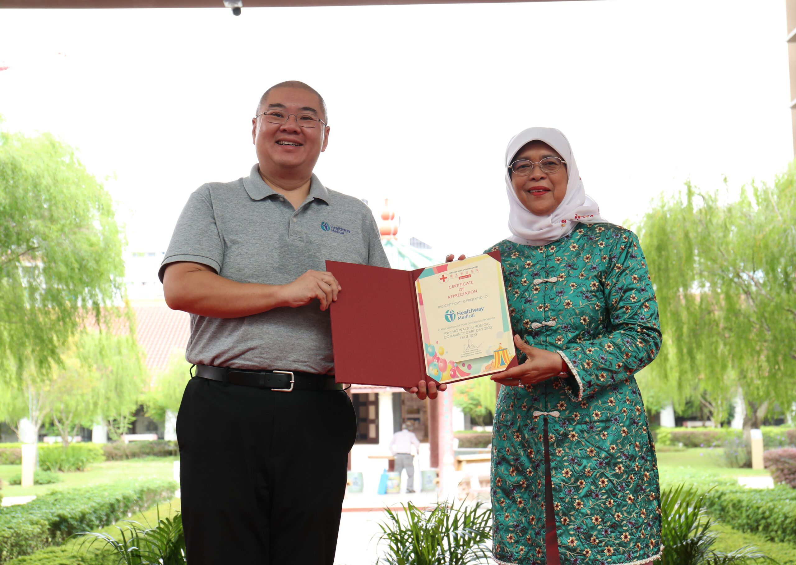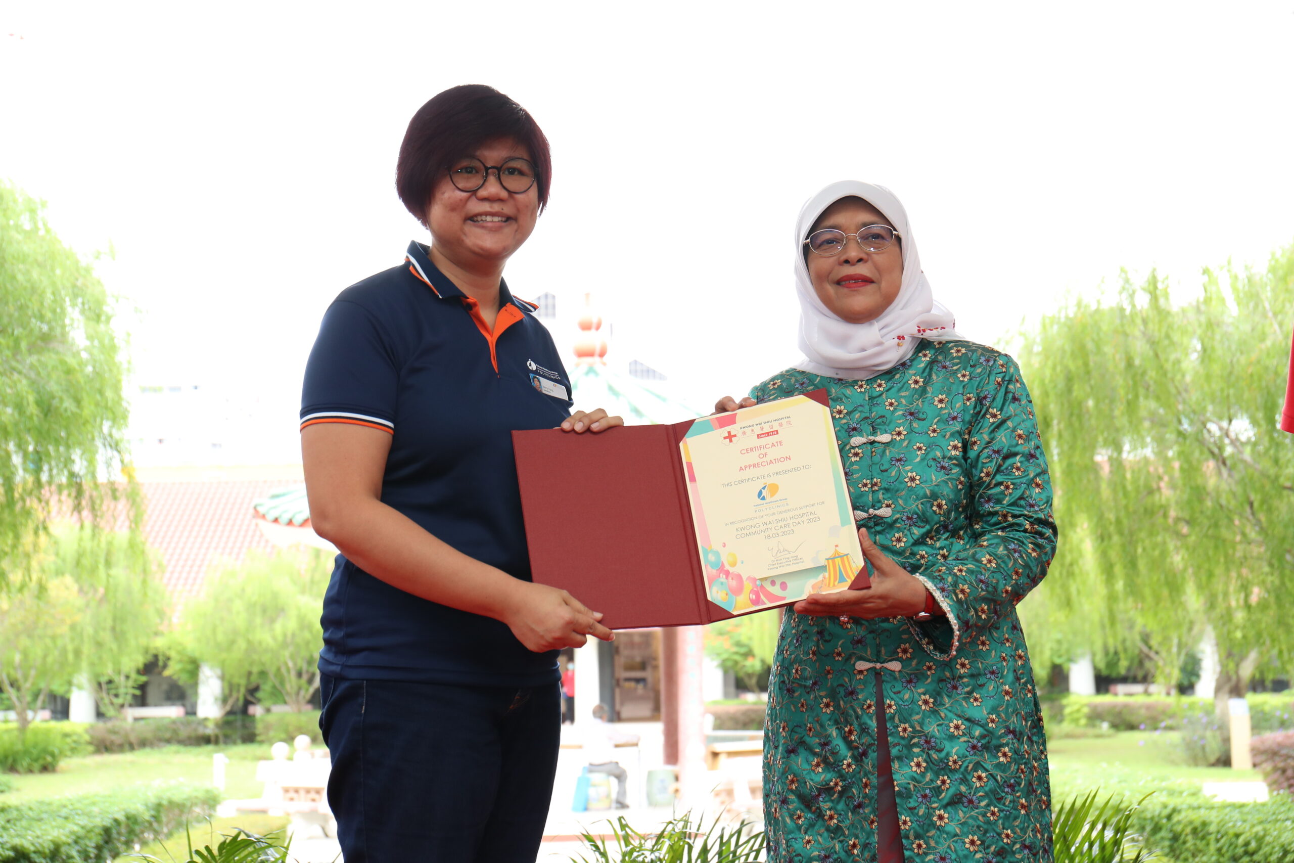 The Hospital had the privilege of welcoming President Halimah Yacob as our Guest-Of-Honour. During her visit, Mdm President toured our premises and was introduced to our rich heritage and initiatives. These included viewing of our KWSH Heritage Gallery and visiting the Senior Care Centre and an inpatient ward, which showcased the students’ training in our latest collaboration with NorthLight School on the ITE Skills Certificate in Community Care Support course.